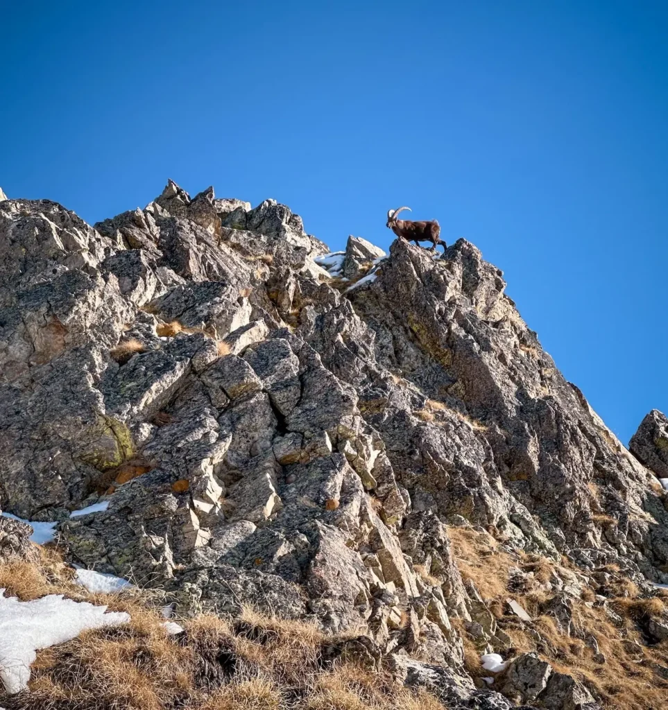 Cette première journée est consacrée à l’ascension de l’arête sud du Petit Cayre. Le soleil chauffe généreusement la face sud et rend l’escalade particulièrement agréable. Les combes nord, encore bien enneigées, contrastent avec le rocher sec et offrent un décor saisissant.